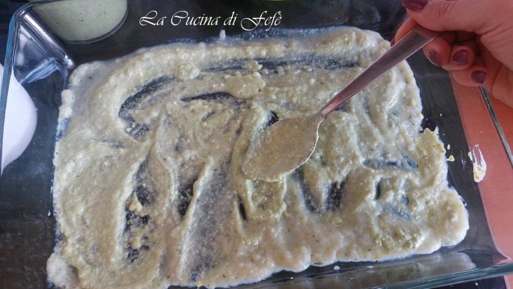 Spread a little of the cauliflower fake béchamel on the bottom of a baking dish.