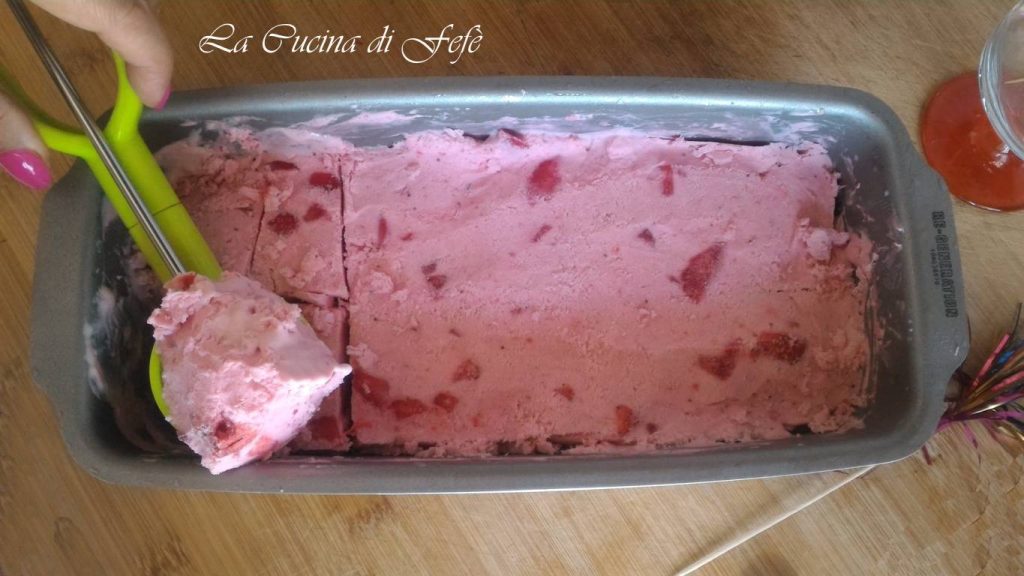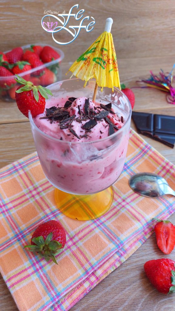 The other day at the local market near my house, I found some strawberries on sale, really splendid, firm and very fragrant, and without thinking twice, I stocked up! However, once I got home, I thought I had made a mistake because it was obvious that since only my husband and I would consume them, it wouldn’t be easy, not even by making a nice fruit salad! I was out of ideas and it was clear there would be too many left, risking spoilage. So, after various hesitations, the idea of ice cream came to mind! However, I didn’t want to create the usual recipe as seen on the web, with a really poor fruit ratio, excessive amounts of cream, and lots of sugar, starting with condensed milk, an ingredient that can easily be omitted! I wanted something more delicate and genuine and, since there was some ricotta left over in my fridge from previous preparations, and also some Greek yogurt which is always my kitchen ace, the fridge-emptying ice cream was born, naturally without an ice cream maker, without eggs, and mixing everything in a bowl! My husband was ecstatic, then I chose to garnish it with chopped fresh strawberries and dark chocolate flakes, which I must say were wonderful! It will be perfect for those who want to enjoy a sweet break without too much guilt. It’s not a fit ice cream but comes very close, indeed next time, I will try to remove even the little cream I put, as it will make it even lighter and more digestible. Try it because it’s really easy, quick and you will make a great impression with all your guests, who will think it is store-bought ice cream!