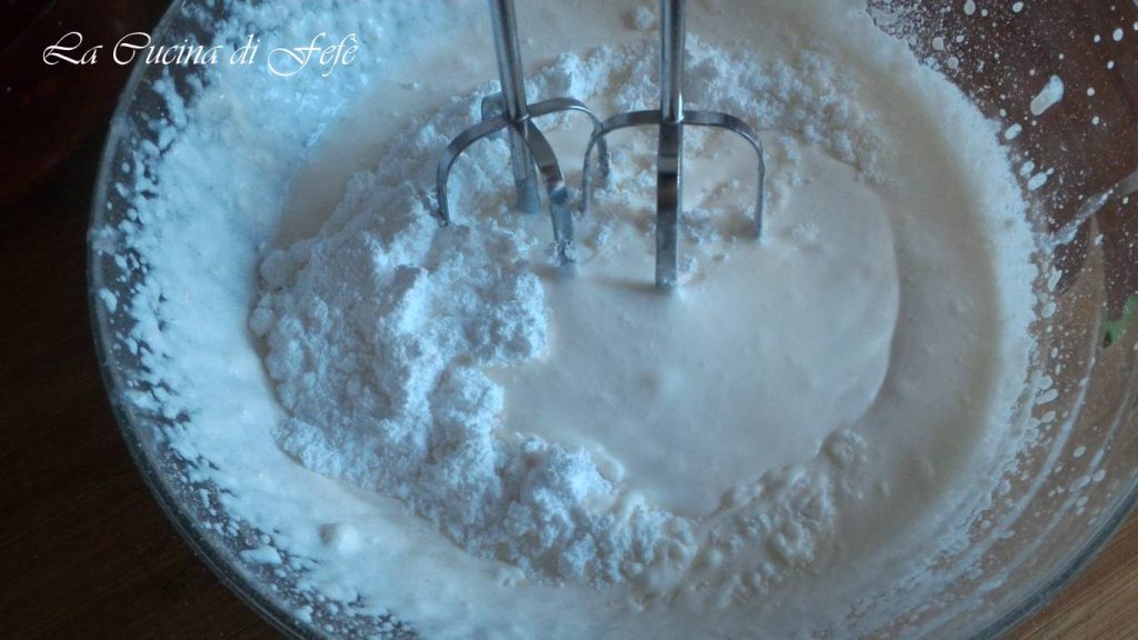 Finally, add the sifted powdered sugar and start to mix with electric whisks at medium speed.
