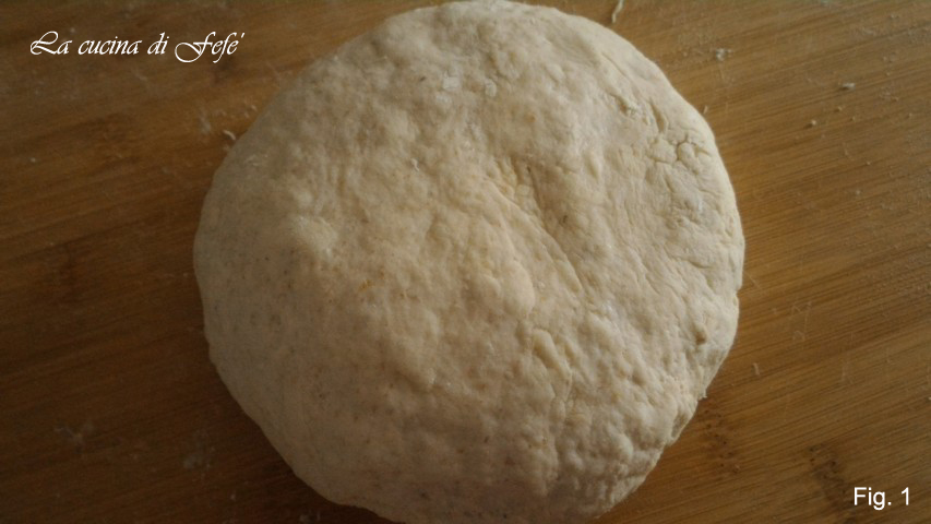 Let it rest covered with plastic wrap and also a dry tea towel in the oven off with the light on for 2 hours or until it doubles in volume (fig. 2).
