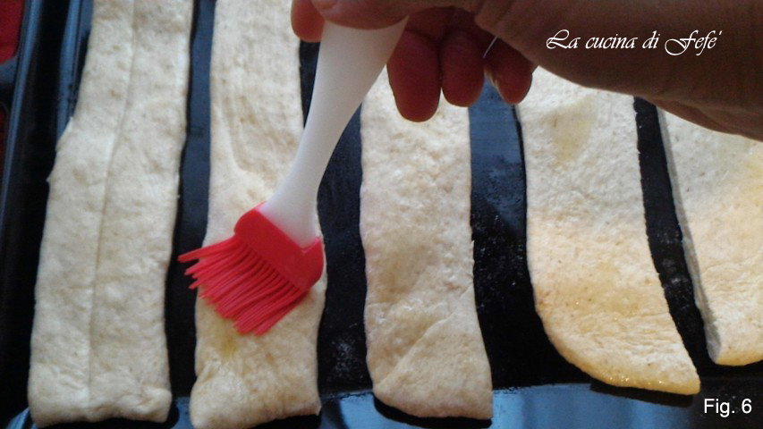 Arrange the strips obtained in a well-oiled baking tray or lined with lightly oiled parchment paper and brush the surface with a little oil (fig. 6).