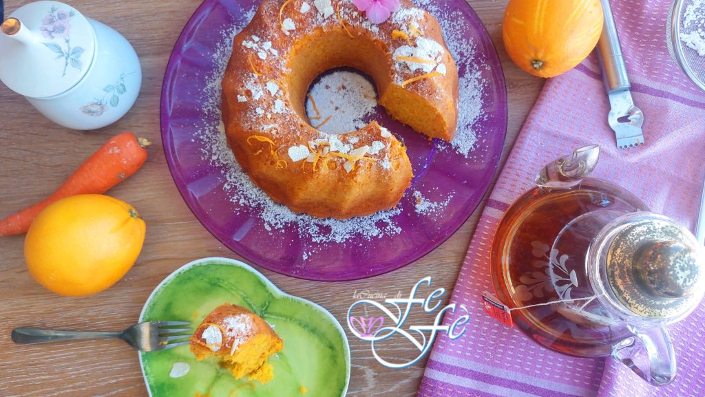 Finally, I managed to find the time to write on the blog the recipe for this super soft bundt cake made with carrots, almonds, and orange juice. There are so many versions of this cake online that I wouldn’t even know how to list them! And I know that everyone who tries a version claims categorically that theirs is the best of all, but frankly, I would be lying if I told you this one isn’t amazing!!! Trust me, in its simplicity, it’s really among the most exquisite I’ve ever made! Not only is it a genuinely pantry cake, as it’s butter-free and made with type 1 flour, much less refined than the classic kind, it’s also deliciously fragrant, thanks to the orange zest and juice, and stays beautifully moist inside, so it will conquer everyone in the family! Even my niece, who hasn’t yet learned to appreciate this kind of cake, gave it full marks! The beauty of this recipe is that you put everything in a food processor and the batter is ready in just a few minutes! It will be perfect for your kids’ healthy snack or breakfast instead of the usual snacks full of sugar, preservatives, and unclear ingredients! Furthermore, believe me, its melt-in-your-mouth texture from the first bite will make you totally fall in love, satisfied by its sweet and citrusy flavor! This carrot bundt cake can be simply enjoyed with a sprinkle of powdered sugar on top, or, for lovers of English-style carrot cakes, you can enrich it with a delicious cream cheese or whatever you desire!