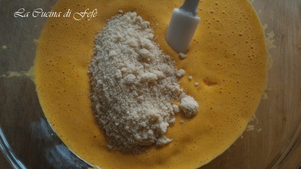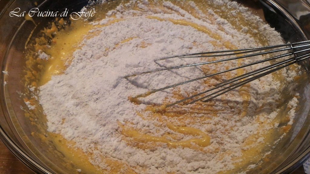 Stir with a spatula, then also add the sugar, the sifted starch, and the pinch of salt.