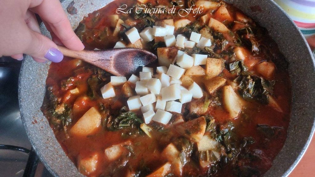 Turn off and add the Ragusano caciocavallo previously cut into cubes. Stir and cover with the lid, letting it rest for 5 minutes or until the cheese melts well.