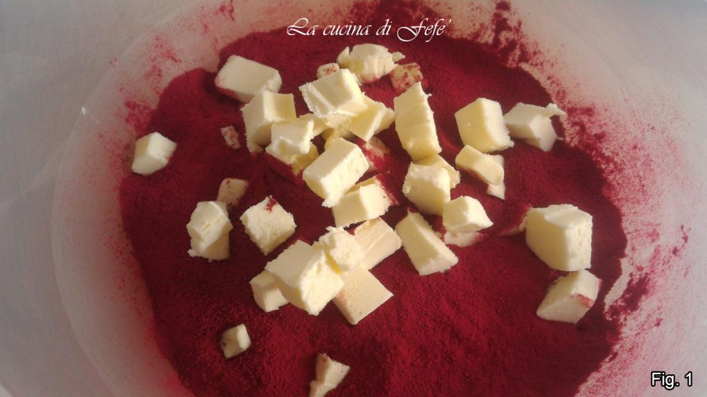 Place the sifted beetroot flour in a bowl with the cold butter cut into pieces.