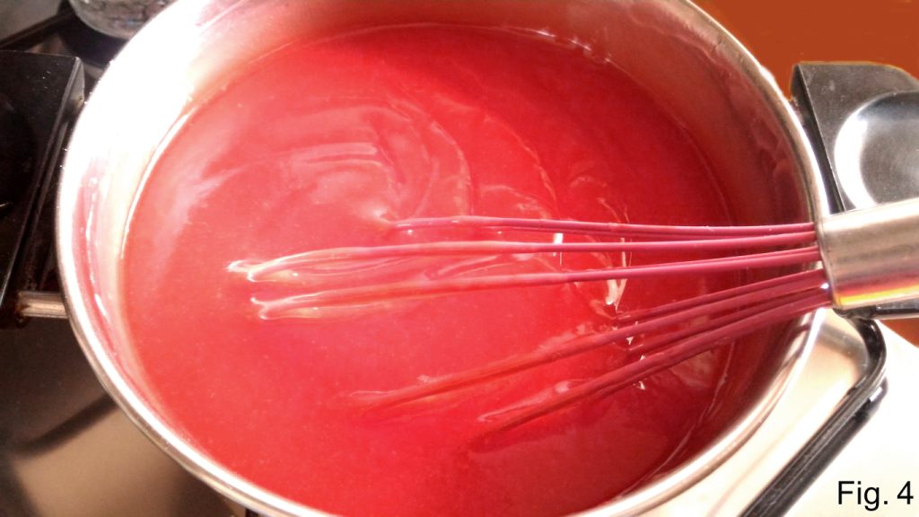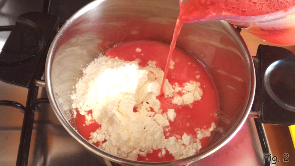 Transfer the juice little by little into a saucepan, mixing it with the sifted cornstarch.