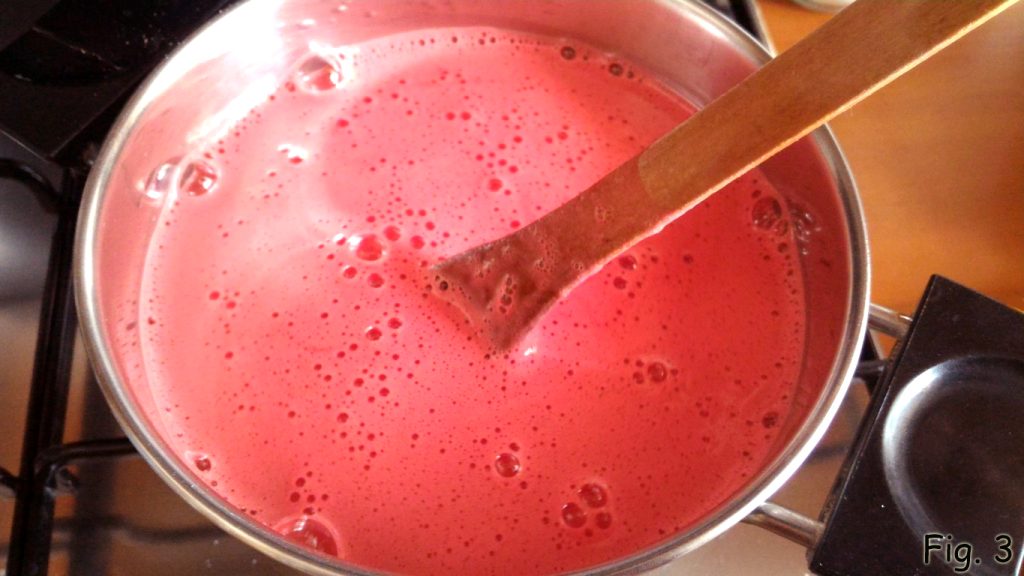 Bring to a boil, then continue stirring, lowering the heat to the minimum for about 5 minutes or until the gel has thickened and acquired a more intense color.