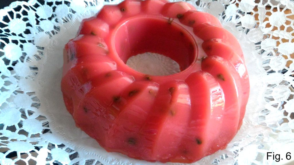 Let the gel cool at room temperature, then place it in the refrigerator for the necessary time to achieve the consistency of a pudding, which will take at least 3 hours, but ideally overnight. After this time, unmold it onto a serving plate.