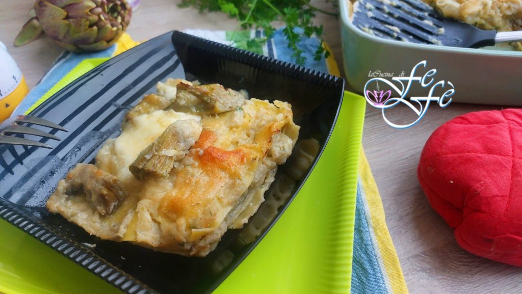 This year I really stocked up on artichokes, perhaps because unlike the previous year, when they were rare and expensive, I found them everywhere at the local market near my house and at more affordable prices! So I prepared all sorts of things with them! First and foremost, the lasagna, also because I wanted to experiment with my super tested cauliflower béchamel. The result? A unique delicacy! These artichoke lasagnas are indeed a vegetarian variant, equally rich and tasty, of the classic ones prepared with the traditional Bolognese ragù. And between us, I digest them better! They will be perfect for all those who, like me, prefer a white version, meaning without tomato and naturally without meat. Thanks to my béchamel, you will get a healthier and lighter first course without losing the final stringy and succulent effect! This special white lasagna will thus be enriched with new and inviting flavors, which I invite you to try and bring to the table for family Sundays or even for Easter lunch!