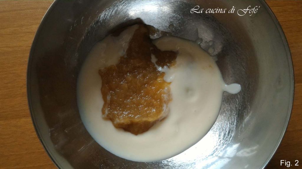 Also incorporate the egg, orange flavor, milk, and sugar, and start mixing with a hand whisk.