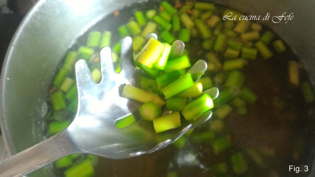 Once ready, focus on the dressing, cutting the asparagus into slices (fig. 2).