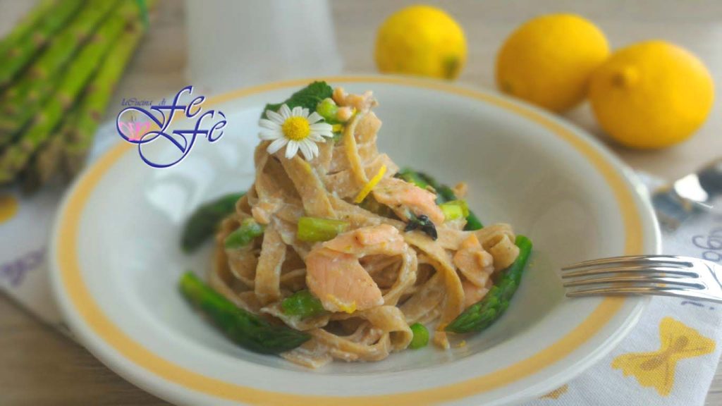 And voilà… your whole wheat tagliatelle with asparagus, ricotta, and salmon are ready to be enjoyed!