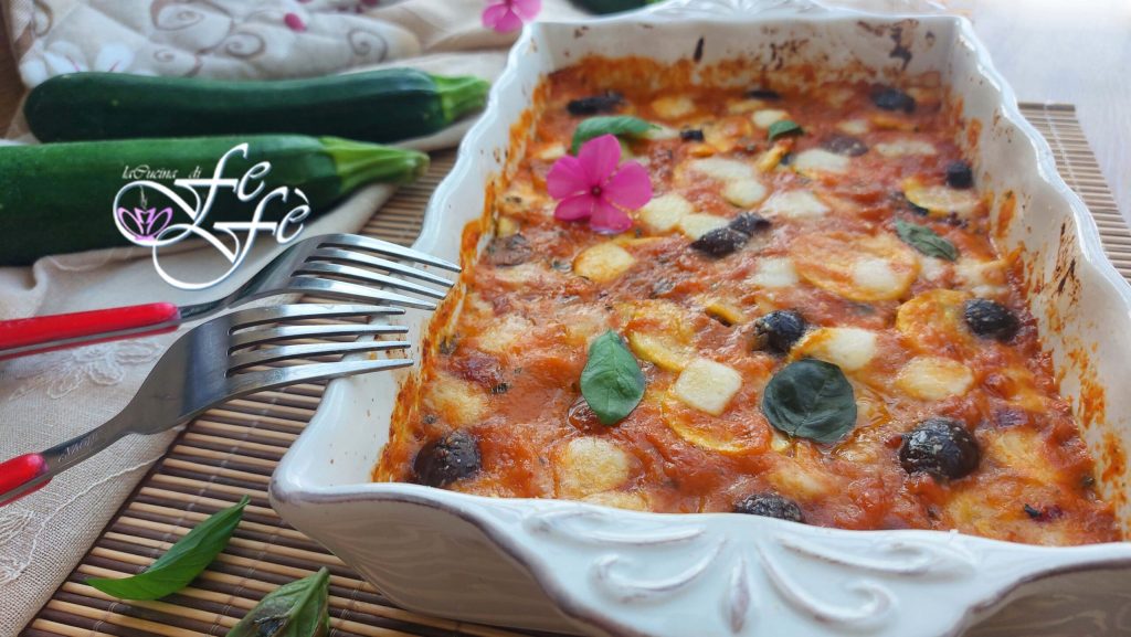 How delicious is eggplant parmigiana? We are used to enjoying it in its classic version with strictly fried eggplants, or in the lighter version, with grilled eggplants before being baked. But what if we think of replacing the eggplants with zucchini sliced into rounds and instead of the tomato sauce dress everything with a thick and velvety pepper cream? We would certainly get a really tasty and fragrant alternative parmigiana! It will be really easy to make, especially since in this recipe the zucchini are added raw! Of course, they must be cut very thin but the result will be delicious, you can trust me! I used two types of cheese, mozzarella and asiago, alternating them in the four layers, but you can also decide for just one type between the two or vary with some sweet or spicy provolone, why not! Surely, you will discover, bite after bite, an unmistakable combination of flavors, which will make this vegetarian side dish very inviting and original! It will also be so filling and satisfying that you can even present it at the table as a second course or appetizer in a buffet to be served cold, cut into squares. You can enjoy your zucchini parmigiana on a picnic, an outing, at the beach, and even at the office!