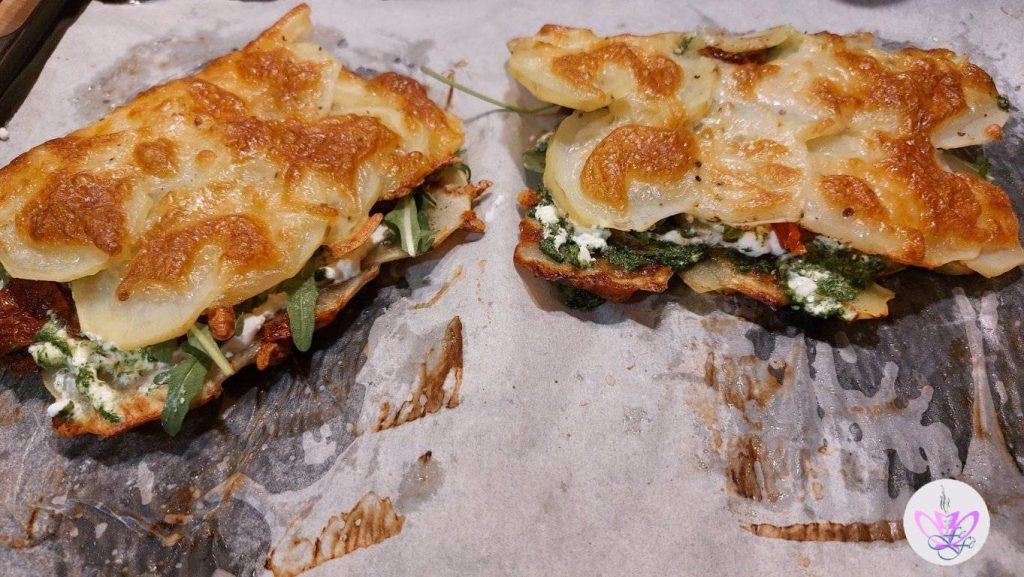 By now, those who know me understand how much I love being creative with vegetables and offering a variety of dishes! The zucchini sandwiches meet this need because they are a truly easy and extremely quick solution for a light brunch, healthy, and filling. Slice the zucchini into slices not too thin, arrange them in rows, overlapping, on a baking tray lined with parchment paper, and cover with grated cheese. The baking time in the oven and the game is done! You will have two sandwiches to fill as you like. Inside I put spreadable cheese, sun-dried tomatoes, arugula, and smoked salmon, but the possibilities are endless, such as adding cold cuts or other cheeses. Zucchini sandwiches can also be cooked in an air fryer, so at the end of the recipe, you will find the cooking times using this method as well. They will be perfect to take on a day trip or as a lunchbox at the office. If you’re making them for the whole family, I invite you to double the doses, and you’ll see they’ll become your kitchen joker!