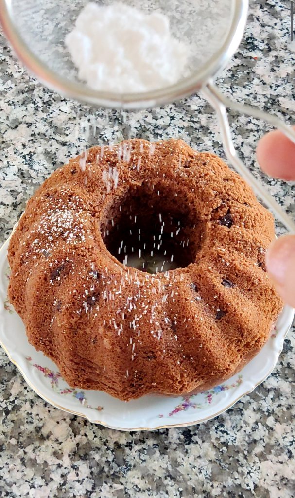 Always do the toothpick test to check the doneness inside the cake. Let it cool before turning it onto a serving plate and decorate as desired with powdered sugar.