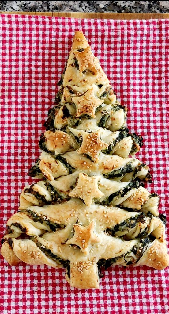 Puff pastry tree with spinach and ricotta a simple and perfect savory pie for the Holidays. Today as well, the recipe of the day is a special and tasty idea for Christmas. A simple and delicious Savory pie with spinach and ricotta in a special Christmas version. I turned a rectangular roll of puff pastry into a tasty Puff pastry tree filled with ricotta and spinach. Just imagine how good it is, and it’s really simple to make and very scenic, perfect also as a centerpiece on your Holiday table. For the filling, I used ricotta, spinach, Parmesan, and a pinch of nutmeg. You can decorate by cutting small stars from the filled puff pastry and with many sesame seeds. A few simple steps to turn a simple Savory pie into a special idea, beautiful to see and delicious to eat. I also recommend not missing the recipe of my Tree of stuffed rolls. If you are looking for a simple idea to prepare but that will make a good impression with family and friends, this is the recipe for you. Let’s run to the kitchen and prepare the Puff pastry tree with ricotta and spinach together