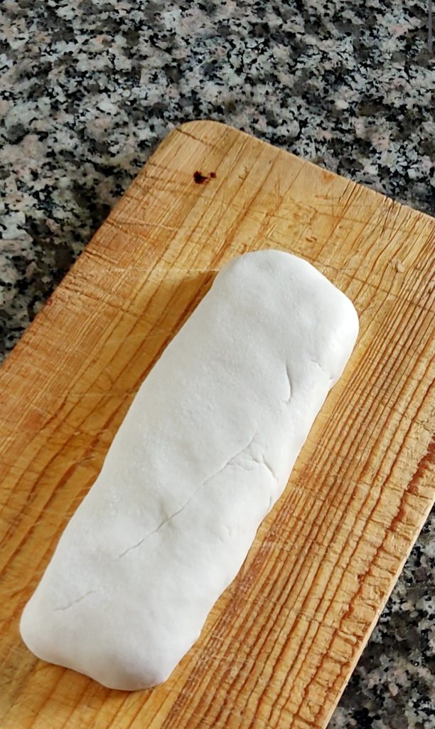 Retrieve the dough and cut it into thin slices. With these quantities, I made about 45-46 pieces, but it depends on how thin you make them. Try to make them all the same size for even cooking.