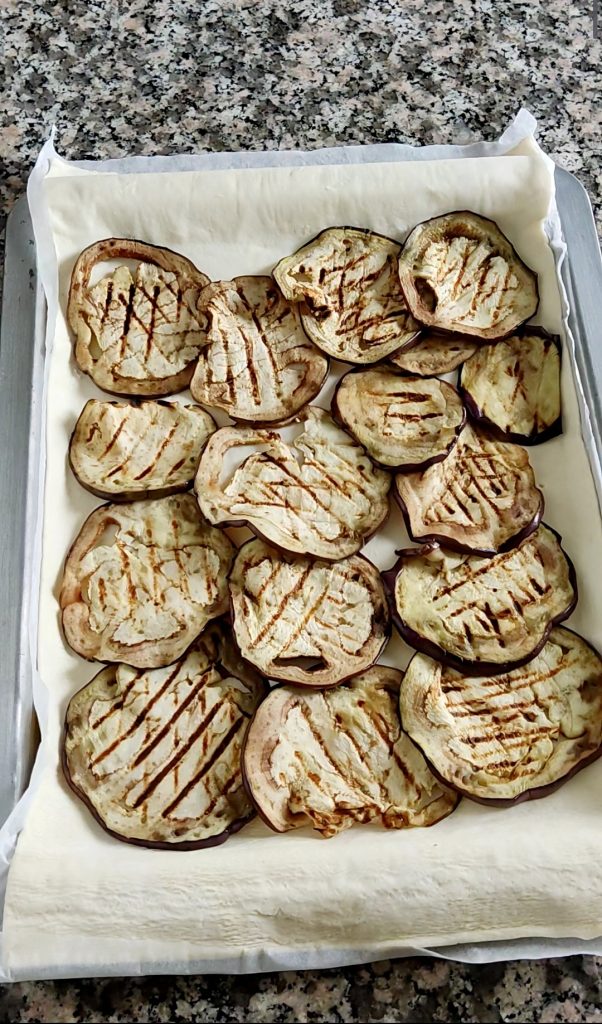 • Fold the puff pastry all around to form a border. Bake the Savory Pie with Eggplants in a preheated oven at 374°F in static mode for 25-30 minutes.