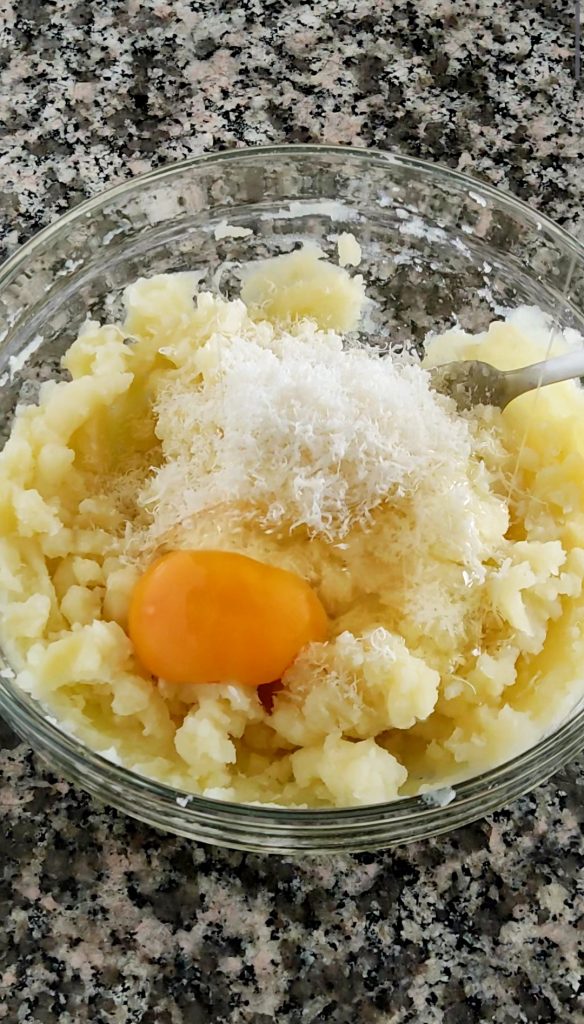 Add a pinch of salt, grated Parmesan cheese, and an egg.