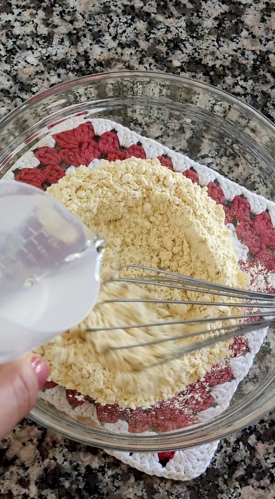 Gradually add the cold water while stirring with a whisk to avoid lumps. You should obtain a smooth and dense batter. Add a pinch of salt, the grated parmesan, and 2 tablespoons of extra virgin olive oil. Mix.