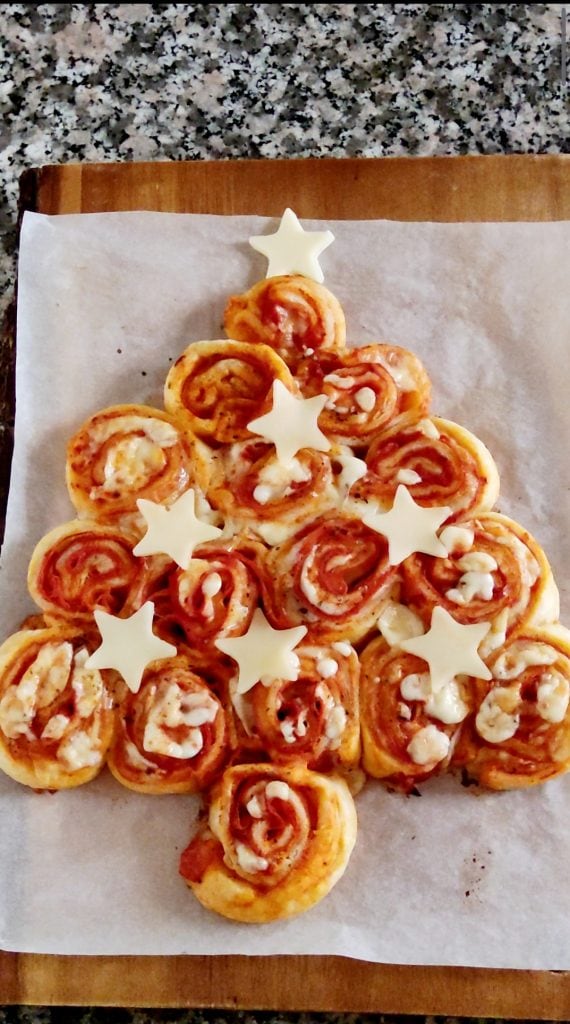 Tree of stuffed pinwheels with tomato, cooked ham, and cheese. How cute and delicious is my Puff Pastry Tree with a pizza flavor, so simple and quick to prepare. Today I transformed a rectangular sheet of puff pastry first into a stuffed roll, then I sliced it into many pinwheels and finally arranged them on a baking tray to form a delicious and tasty Stuffed Puff Pastry Tree. A perfect appetizer for the upcoming holidays that will amaze and delight family and friends with taste and goodness. Don’t you find it perfect also as a centerpiece to eat a little at a time? I recommend also reading the recipe of my Rustic Puff Pastry Tree. You can prepare it in advance and, without baking it, store it in the fridge, or you can freeze it to have it ready, just to heat for a few minutes in the oven or even less time in the microwave. What do you say, have I already convinced you to try it? Let’s run to the kitchen and prepare the Tree of Puff Pastry Pinwheels together