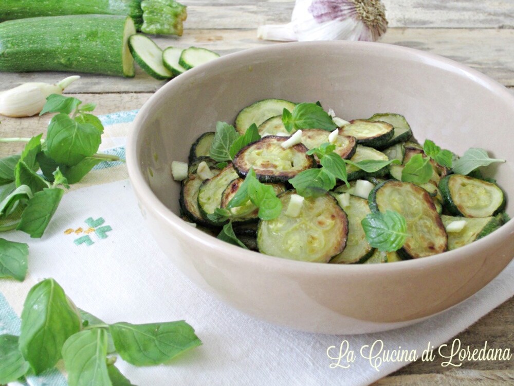 Transfer the zucchini to a bowl, removing the garlic clove. Add fresh mint leaves and a garlic clove cut into small pieces. Let them marinate before enjoying. They are good both hot and cold, and even better the next day!