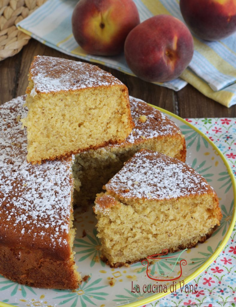 The recipe for peach sponge cake is butter-free and milk-free, and you don’t need an electric mixer, just a blender or processor to work all the ingredients.