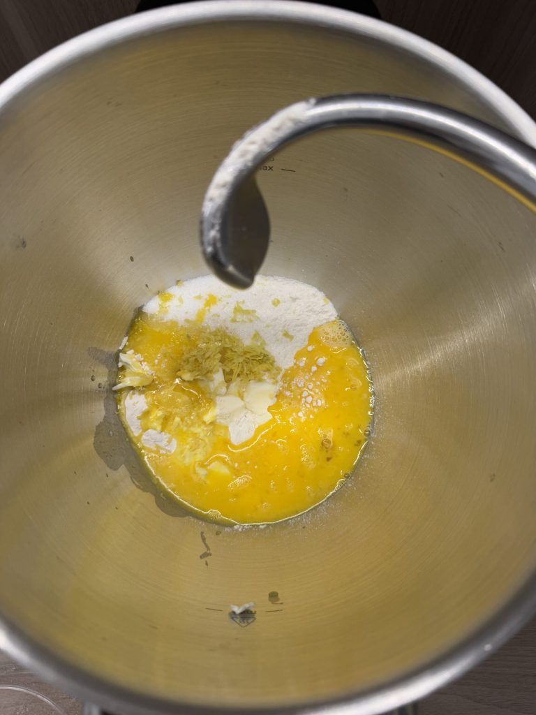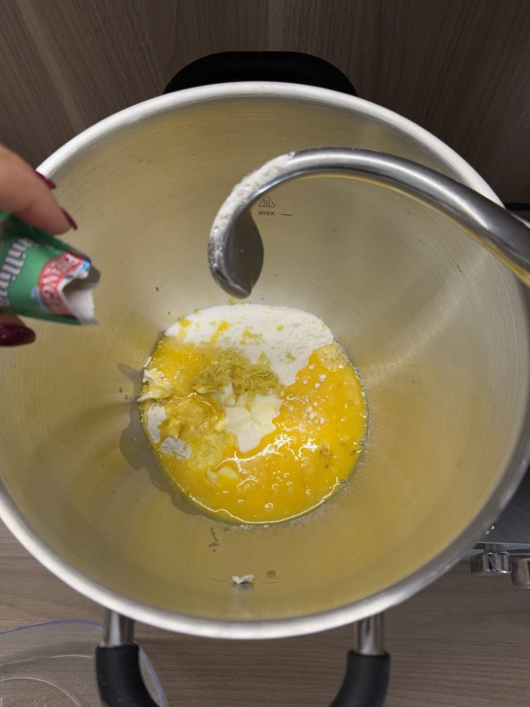 Also add the grated zest of one lemon, preferably organic. Be careful to grate only the yellow part because the white part is bitter.
