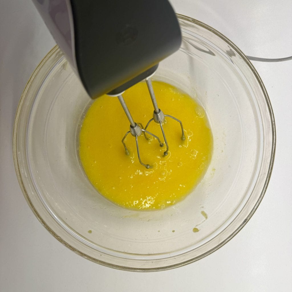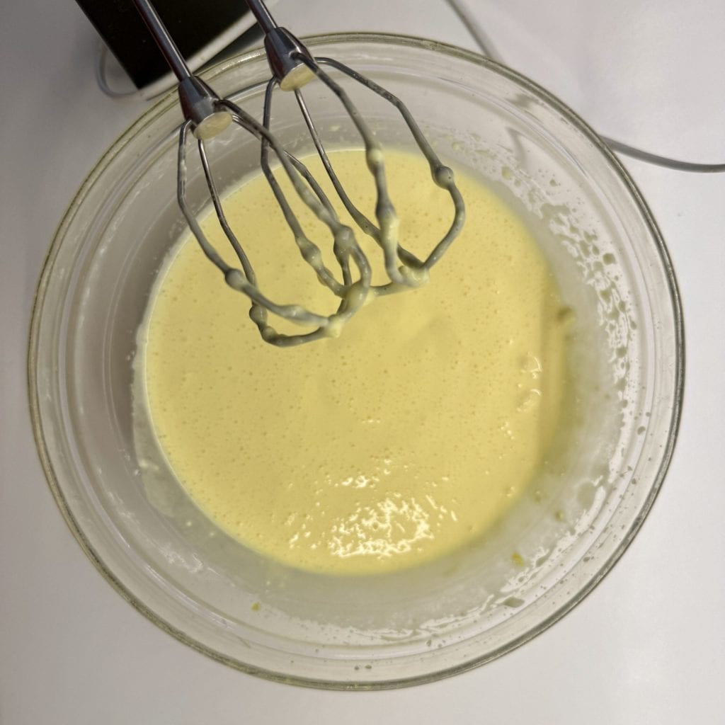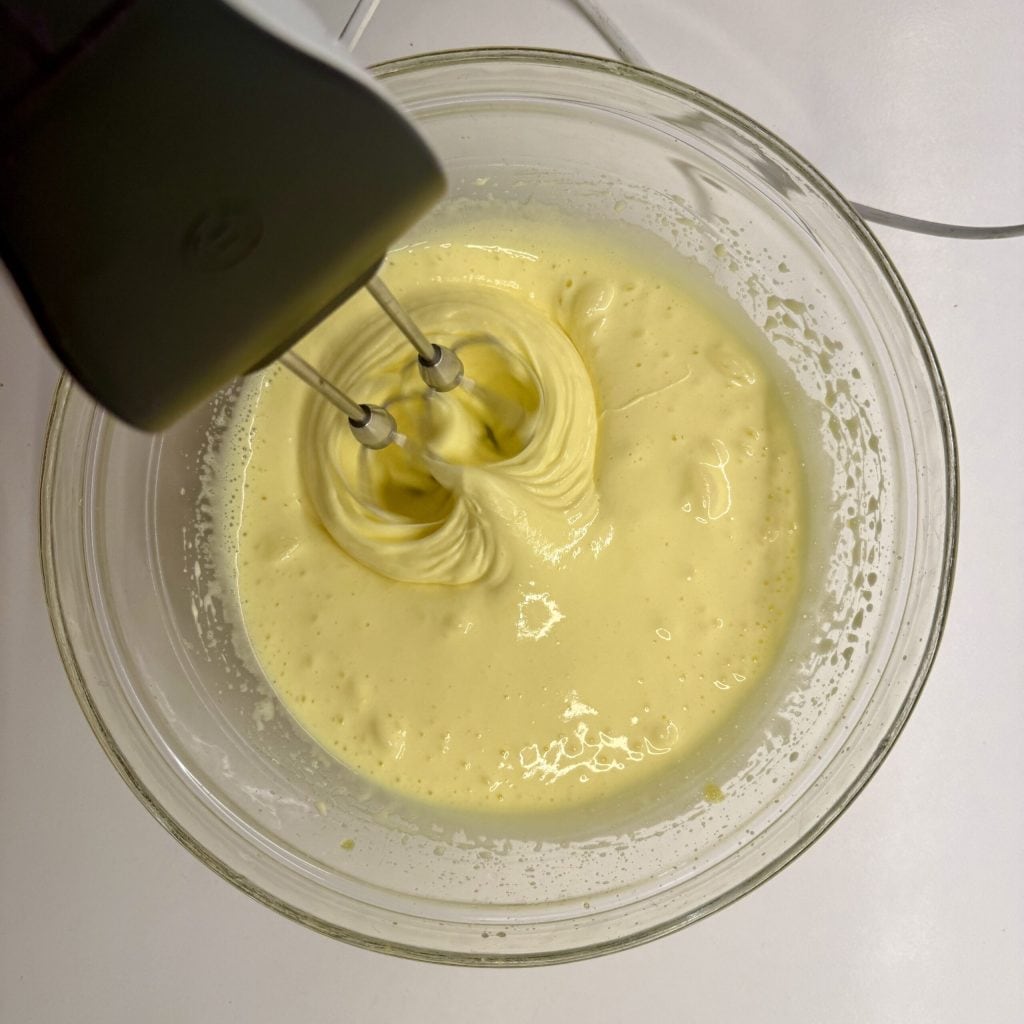 With the electric beaters, start whipping the mixture at high speed for 7-8 minutes.