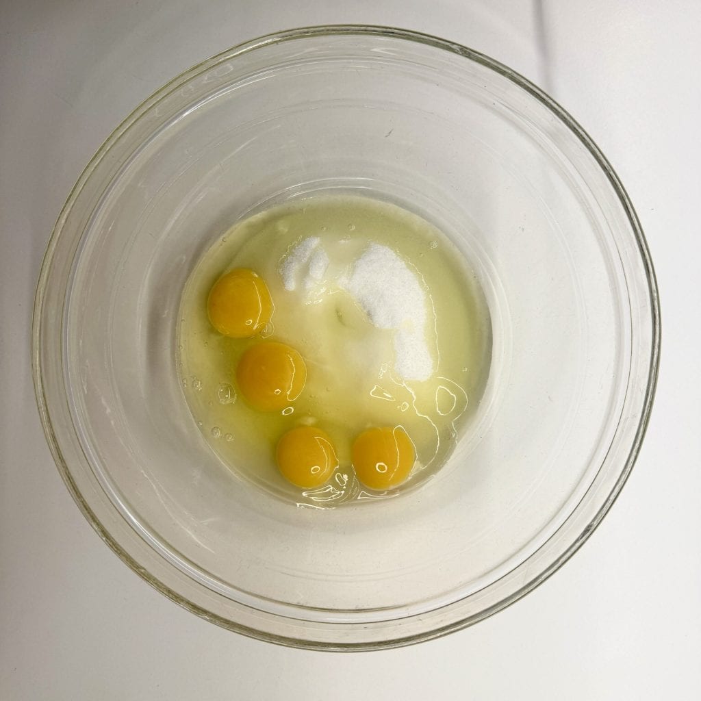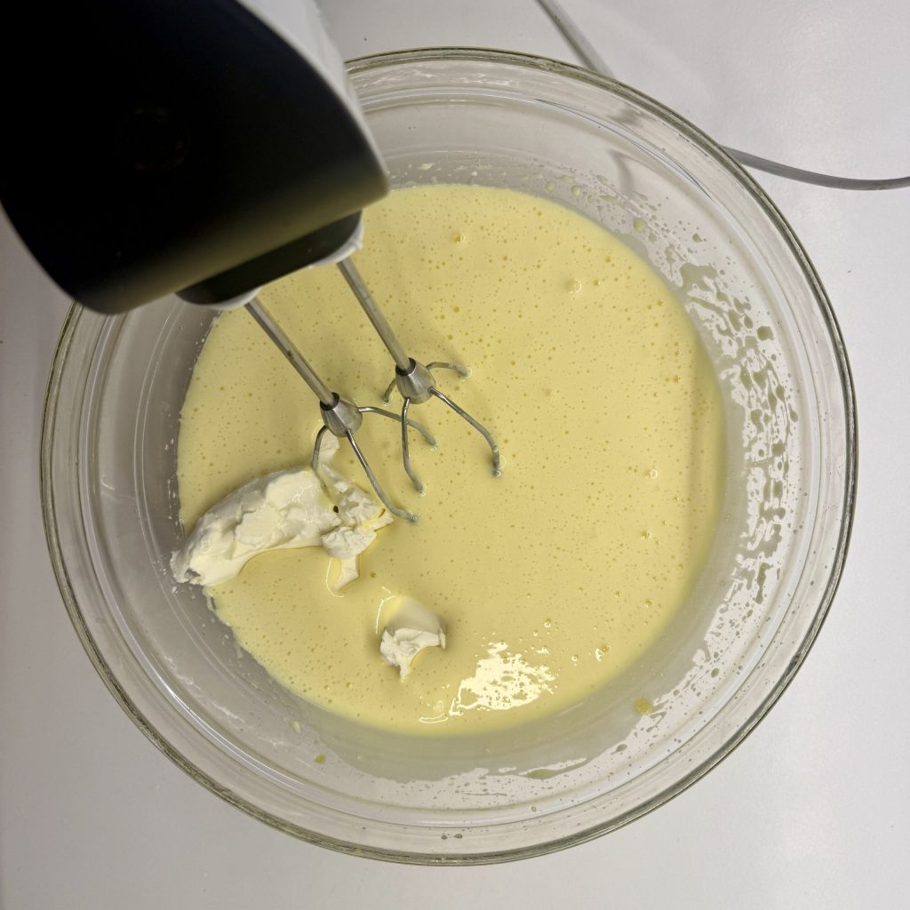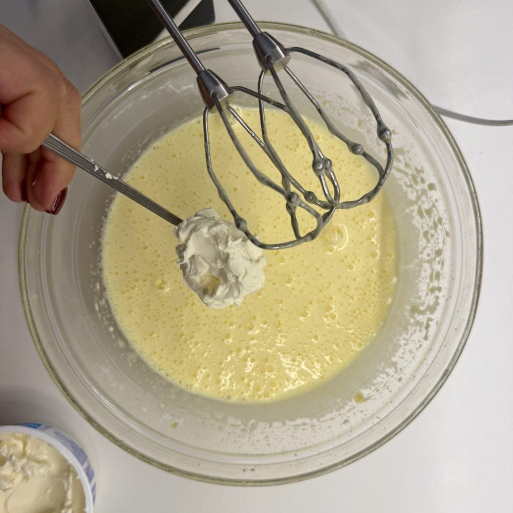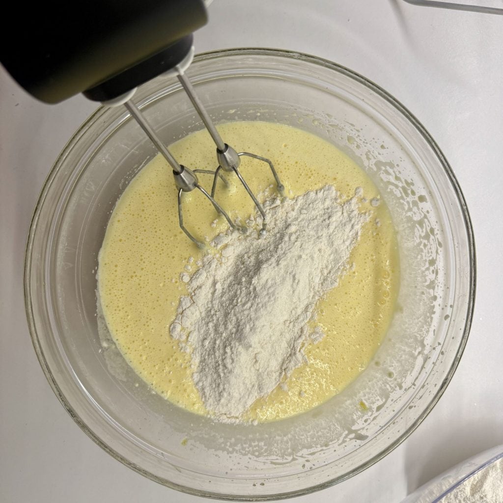 With the electric beaters, start whipping the mixture at high speed for 7-8 minutes.