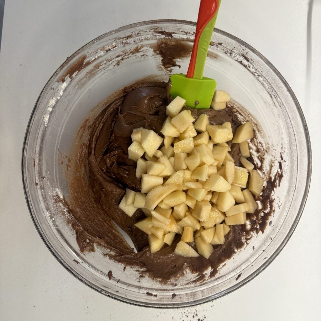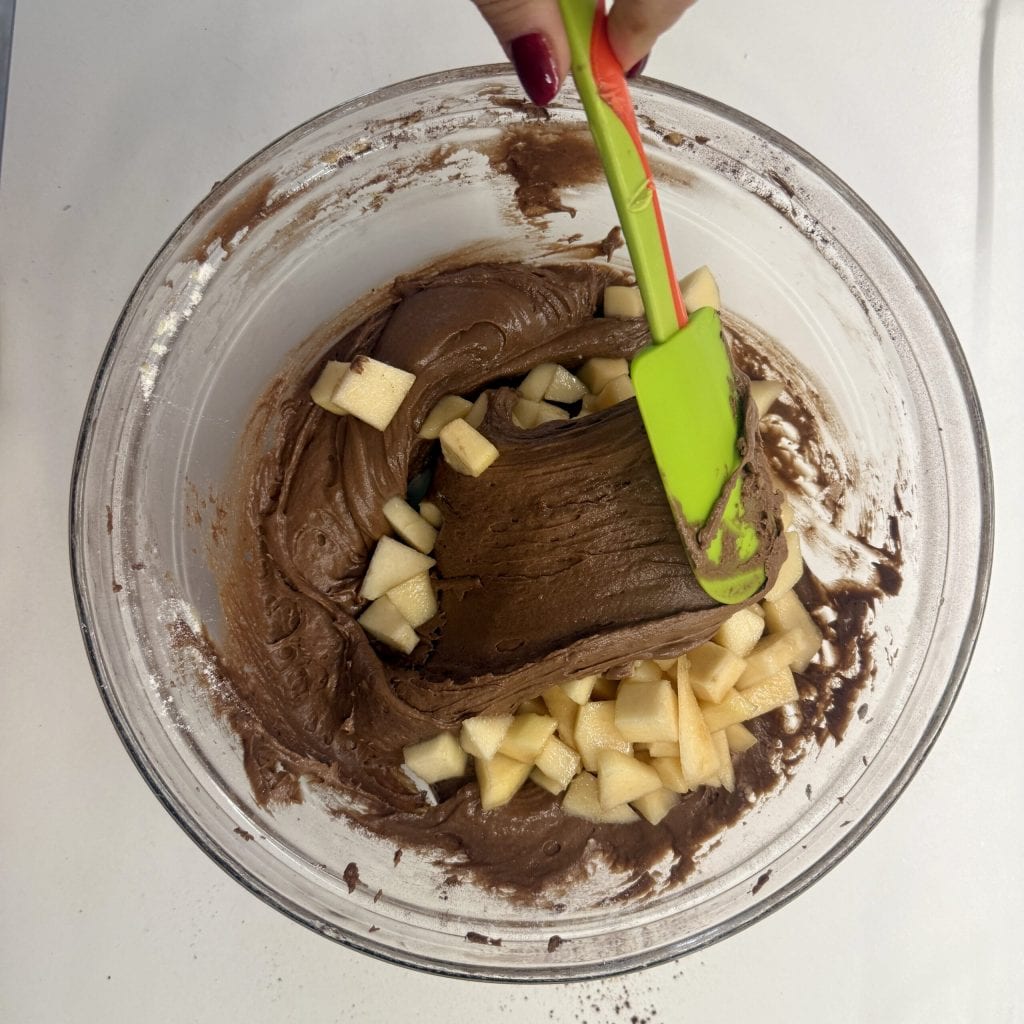 With a spatula, incorporate them gently into the batter until they are well distributed.