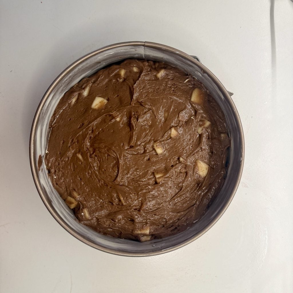 It’s very easy to prepare. The secret to making a soft and delicious pear and chocolate cake? Whip the eggs and sugar very well at the beginning: the mixture should be fluffy and frothy and you should gently incorporate the rest of the ingredients.