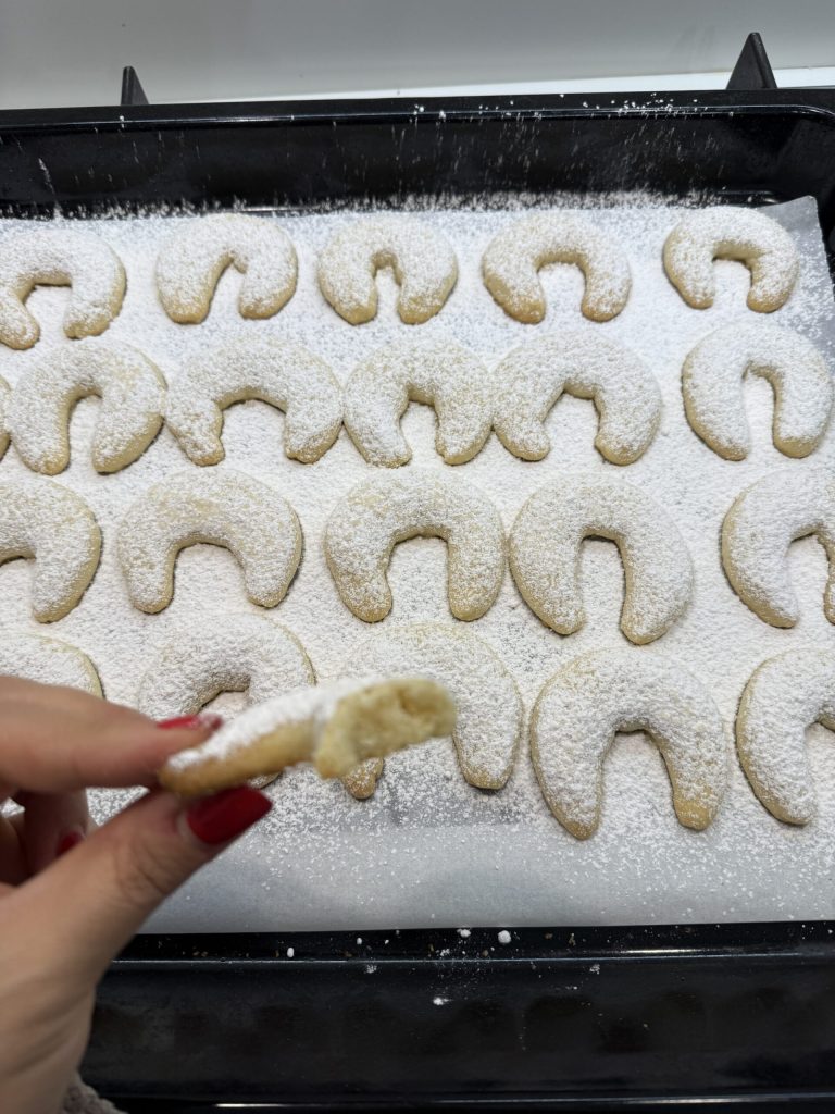 – Vanillekipferl can be stored in a tin or another well-closed container protected from humidity. They can last many days while maintaining their goodness: for this reason, they are perfect for gifting. In this case, you can make them even a week in advance.