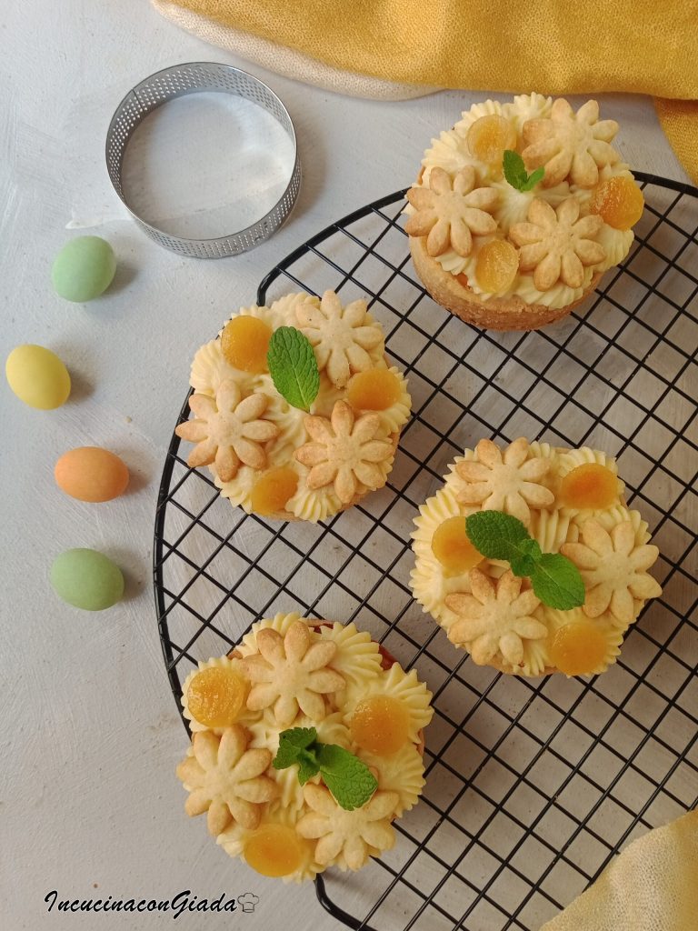 With the leftover pastry, create small flowers or any Easter shapes to decorate the mini PASTIERA.