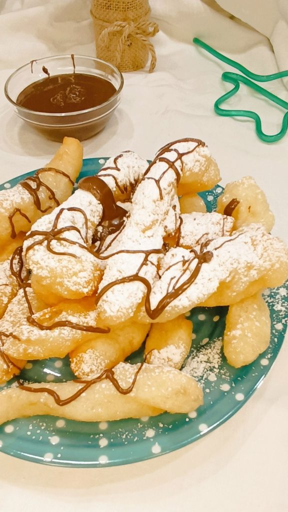 They are nothing more than small pieces, strips of pizza dough that, once plunged into hot oil, become light and soft but with a crispy, golden crust. The final touch is the hazelnut cream that melts when in contact with the dough’s heat, creating a combination I would dare call “dangerous” for diets.