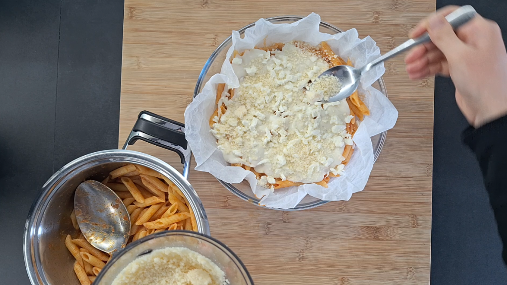 This version is designed to be easy and accessible to everyone, even if you don’t have much kitchen experience. You can prepare the sauce in the Monsieur Cuisine Smart (or on the stove), while the béchamel and pasta are handled separately, so you have everything under control without complicating your life.