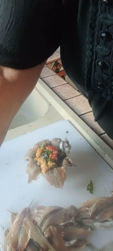 • Clean the anchovies, remove the head and the central bone by opening them like a book. Rinse them under running water to remove all residues. Dry them on absorbent paper,
