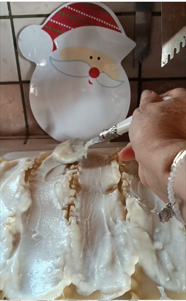 Cook the lasagna, drain them al dente, and let them dry on a dish towel. Now on each sheet, cover with a layer of béchamel.