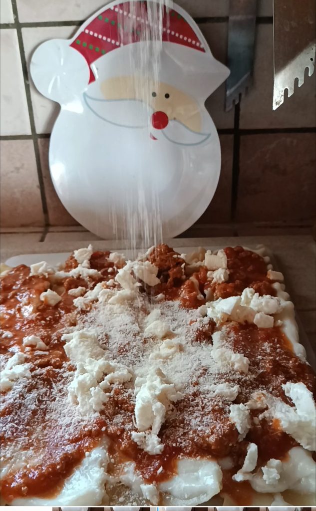 Place them in a baking tray after spreading the bottom with ragù. Cover the lasagna flowers with plenty of ragù and sprinkle generously with grated cheese.