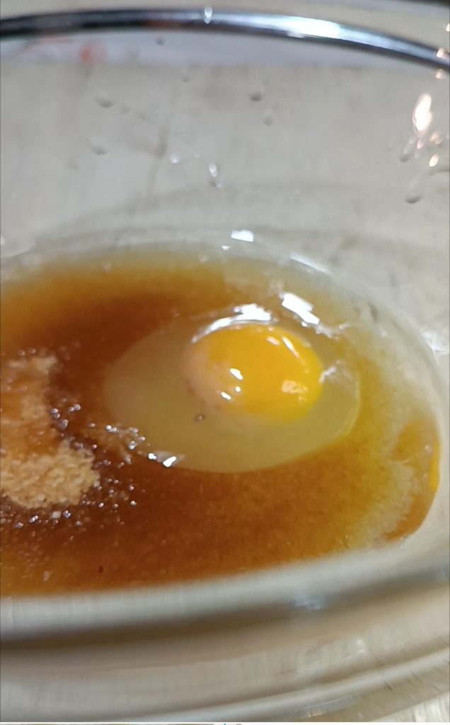 In a bowl, mix the sugar, egg, and sunflower oil.