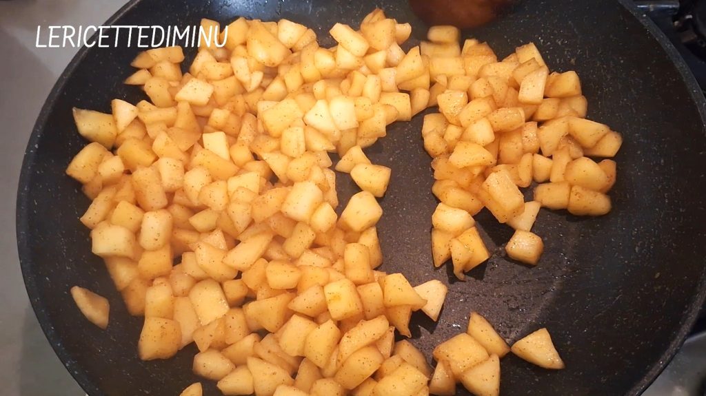 Cut them into pieces and place them in a non-stick pan with sugar, cinnamon, and the strained juice of 1 orange.