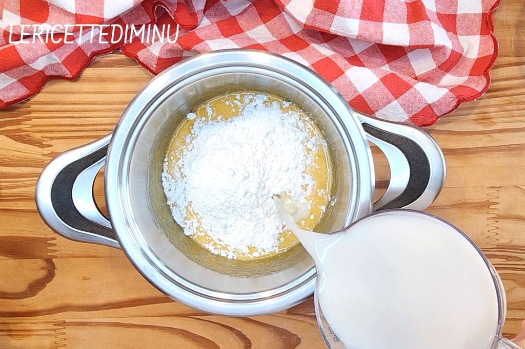 • Add the starch and a little milk and incorporate as much as possible before adding more milk.