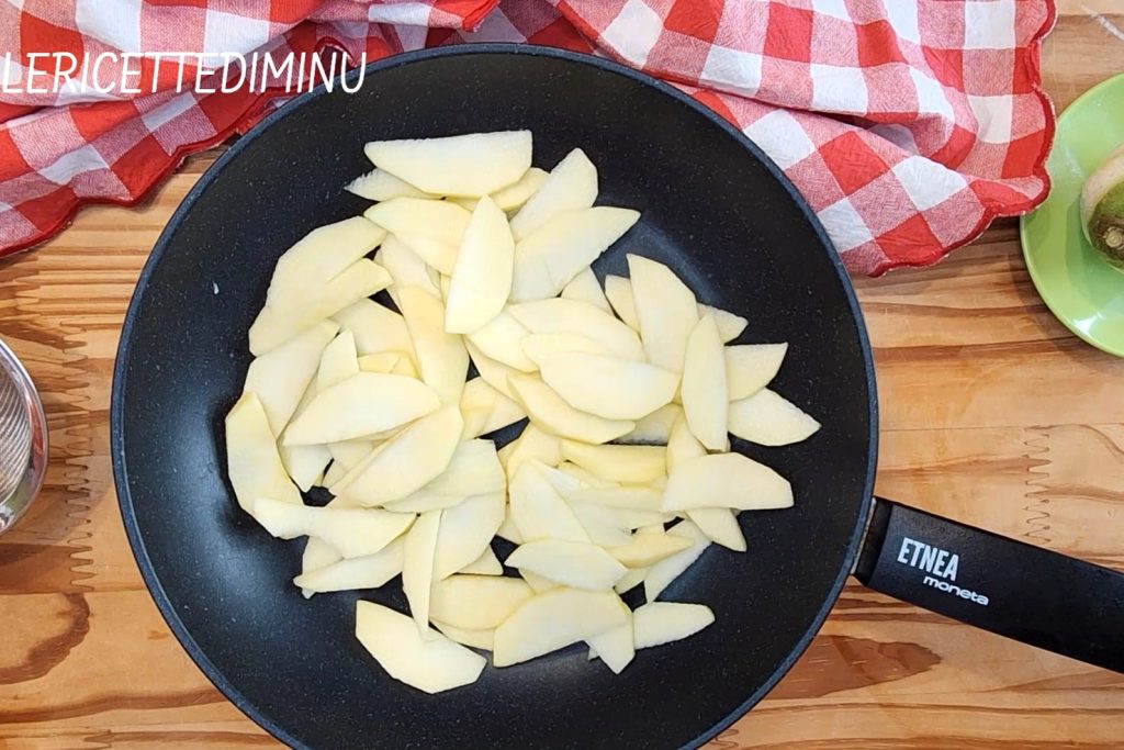 Cut into thin slices, transfer them to a non-stick pan with a few drops of lemon (juice of about a quarter of a lemon) and sugar.