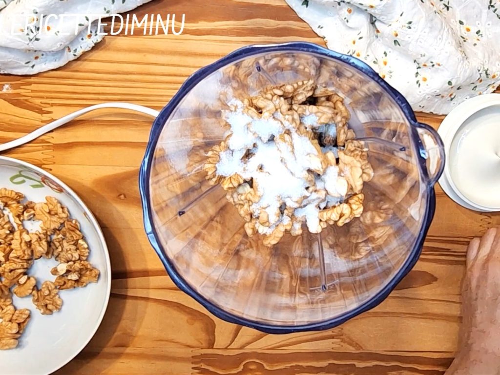 • In a blender, chop the walnuts with 2 tablespoons of sugar taken from the recipe.