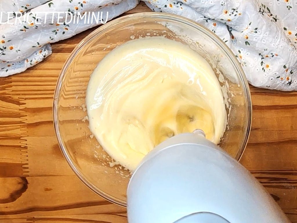 • In a bowl, beat the remaining sugar with the eggs using electric whisks.