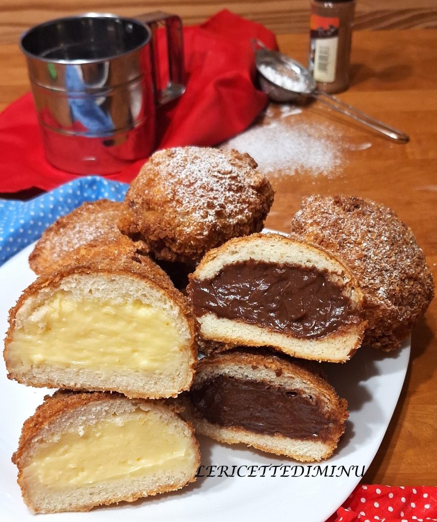 Catanese irises with cream and chocolate are a sweet leavened dough preparation, filled and then fried.