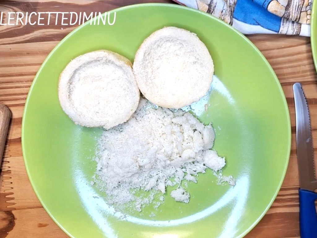 First, preferably with a bread knife, cut the milk rolls in half (for the recipe click here) and remove the crumbs from both the upper and lower parts.