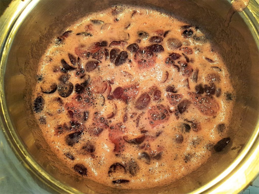 Do not fill the pot with cherries beyond halfway; for this purpose, I used two pots.