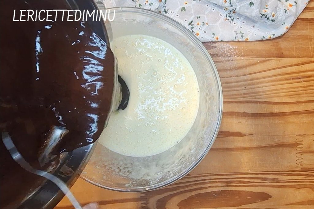 At this point, add the melted chocolate with butter and incorporate them into the mixture with the help of a spoon.