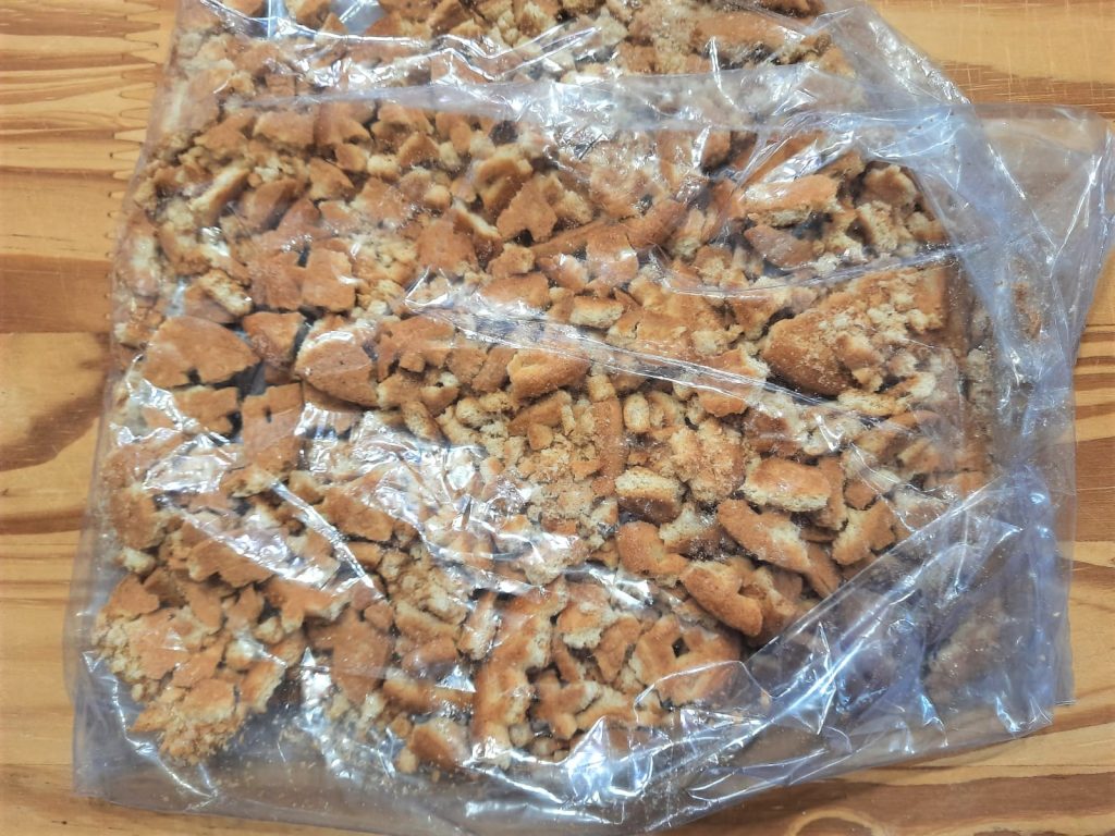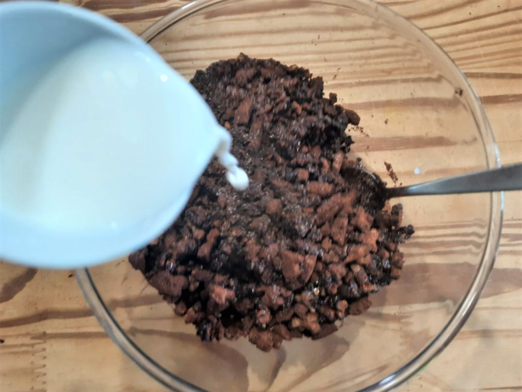 • Put the cookies in a freezer bag and crush them coarsely with a rolling pin or a bottle.
